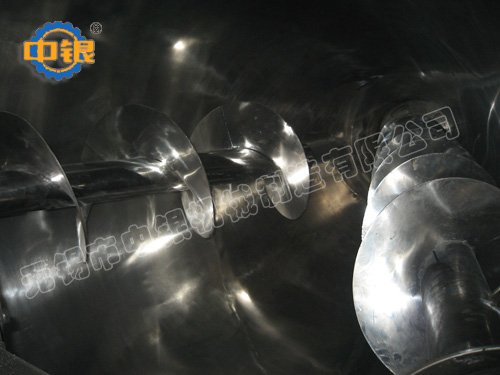 雙螺旋錐形混合機的攪拌部件為兩條不對稱懸臂螺旋,長短各一,它們在繞自己的軸線轉動(自轉)的同時,還環繞錐形容器的中心軸;借助轉臂的回轉在錐體壁面附近又作行星動(公轉);該設備通過螺旋的公、自轉使物料反復提升,在錐體內產生剪切、對流、擴散等復合運動,從而達到混合的目的。產品可根據要求設計外夾套(加熱、冷卻),噴霧器,廣泛應用于化工、醫藥、農藥、染料、建材等粉體與粉體的混合、反應。 該機根據工藝要求可在混合機筒體外增加夾套,通過向夾套內注入冷熱介質來實現對物料的冷卻或加熱;冷卻一般泵入工業用水,加熱可通入蒸汽或電加熱導熱油。
