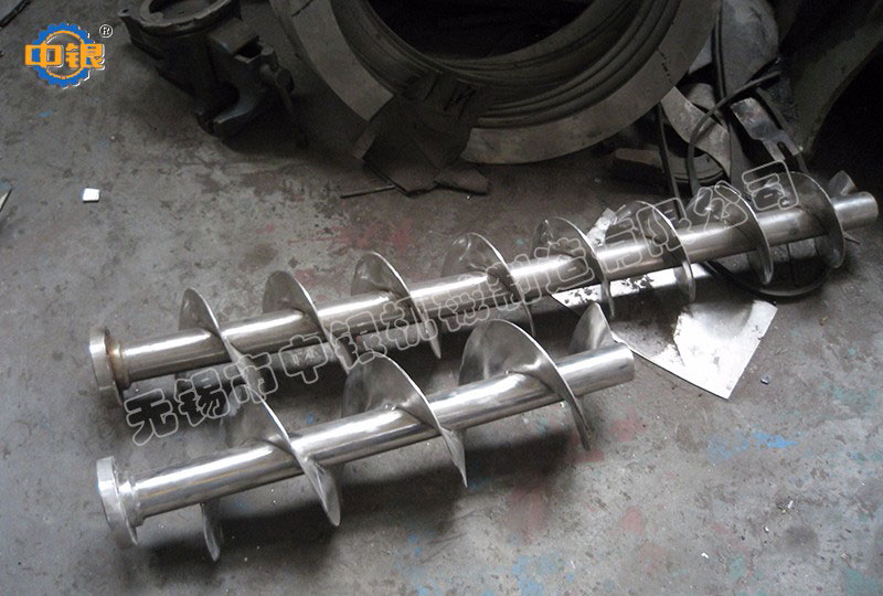 雙螺旋錐形混合機筒內兩只非對稱螺旋自轉將物料向上提升,轉臂慢速公轉運動;使螺旋外的物料,不同程度進入螺柱,從而達到全圓周方位物料的不斷更新擴散,被提到上部的兩股物料再向中心凹穴匯合,形成一股向下的物料流,補充了底部的空缺,從而形成對流循環的三重混合效果;標準型錐形螺旋混合機有兩根攪拌螺旋,實際應用中根據設備規格大小可以采用單(一根長螺旋)、雙(長短各一兩根不對稱螺旋)、三(兩短一長對稱布置)根螺旋;理論上攪拌螺旋越多,混合效果越好;設備一般采用梅花狀“錯位閥”,此閥與長螺旋底部貼合緊密,有效減少混合死角,驅動形式有手動和氣動可選;根據用戶需要,也可加裝蝶閥、球閥、星形卸料器、邊出料等。